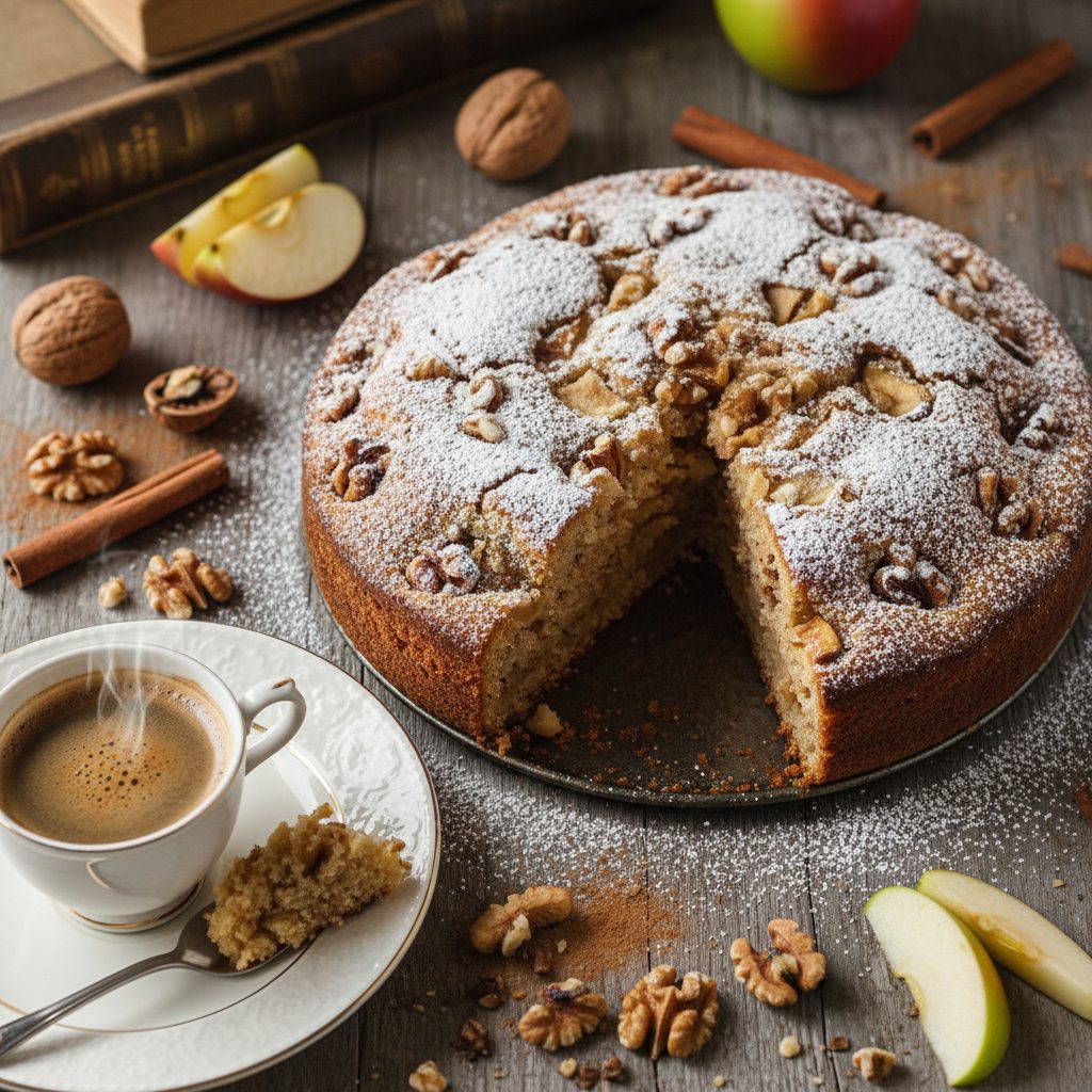 Delicioso bolo de nozes e maçã, perfeito para o lanche. Receita prática e fácil de fazer, ideal para quem busca um sabor caseiro e reconfortante.