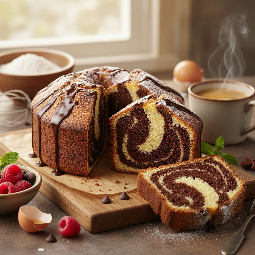 Prepare um delicioso Bolo Mármore Clássico com nossa receita simples. Saboreie a combinação perfeita de baunilha e chocolate em cada fatia!