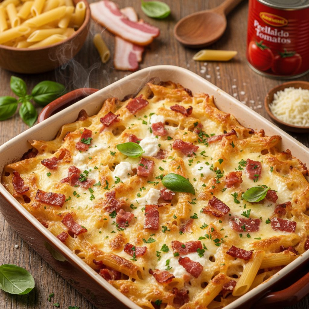 Delicioso macarrão gratinado com bacon e muçarela, perfeito para um almoço ou jantar especial. Uma receita fácil de preparar e que agrada a todos os paladares.
