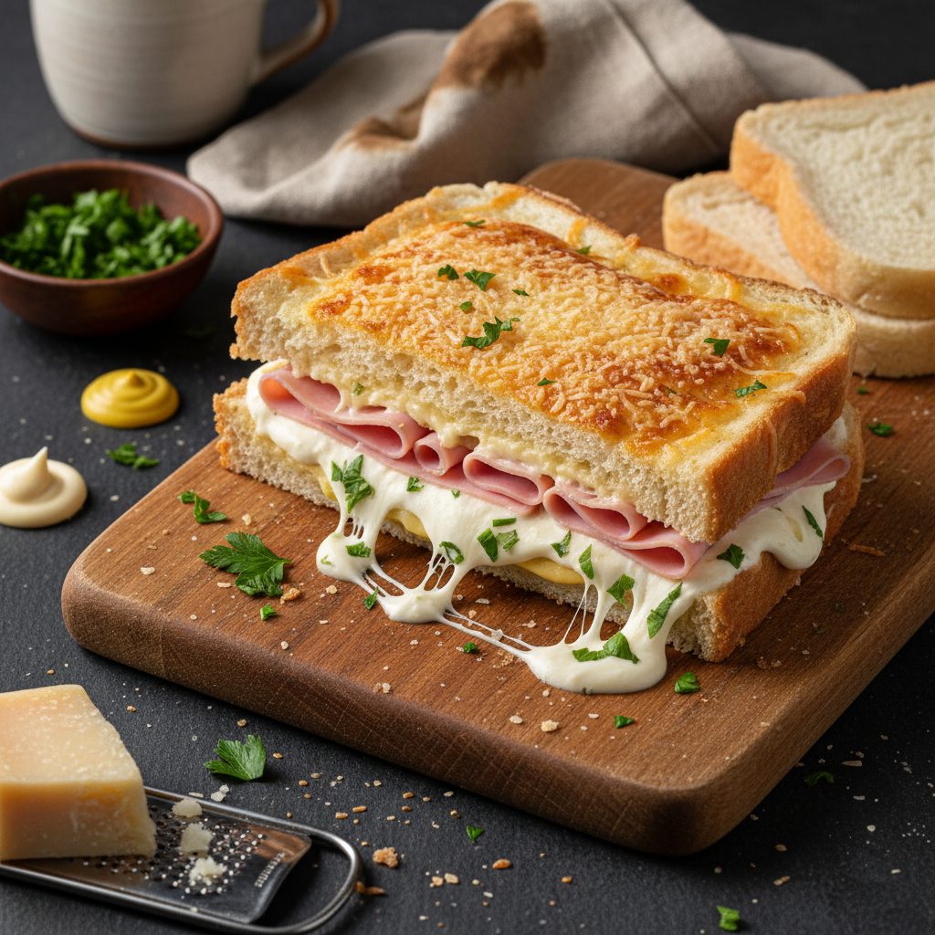 Delicioso sanduíche gratinado, perfeito para um almoço rápido ou um lanche reforçado. Prepare em minutos e desfrute de cada mordida cremosa e saborosa.